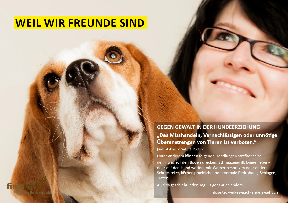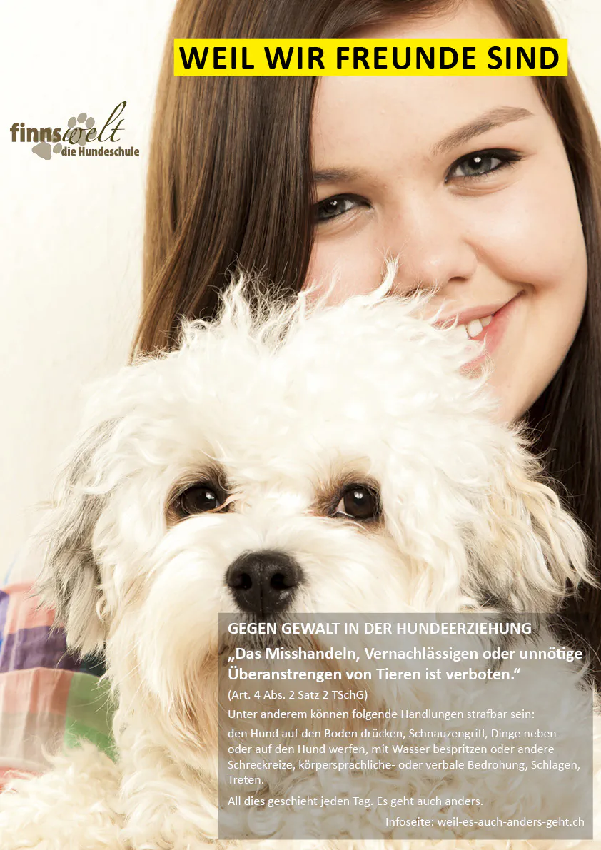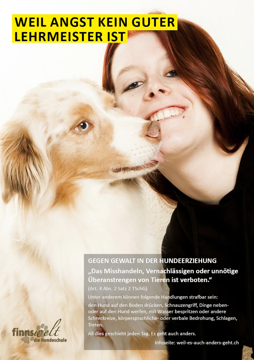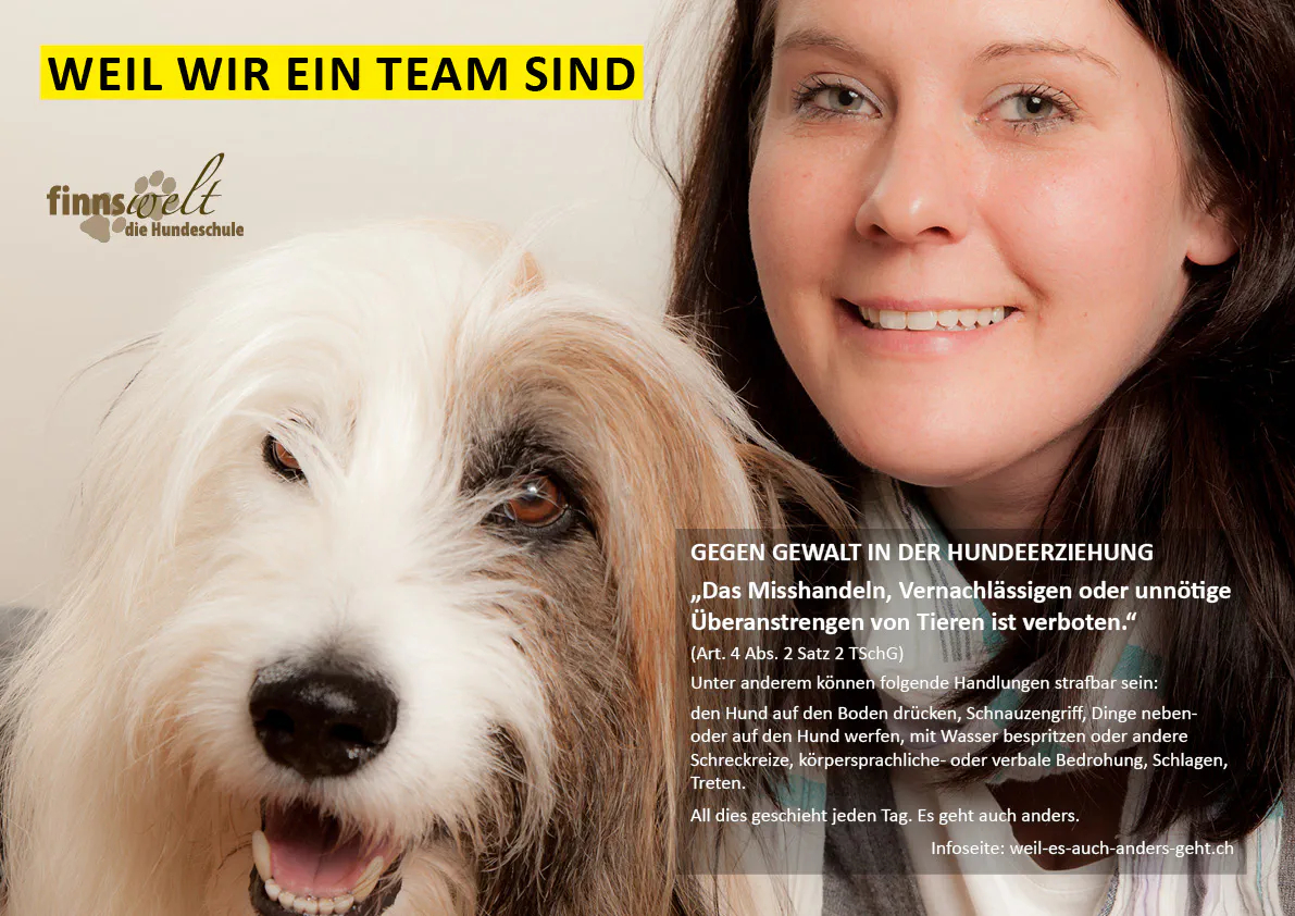 Die Idee von Isabelle Merk, der Gründerin der Hundeschule FinnsWelt: Ein Foto eines Mensch-Hund Team mit einen mit "Weil..." beginnenden, frei gewählten, prägnanten Satz, z.B. "Weil wir Freunde sind" dazu einen Artikel aus dem Tierschutzgesetz mit ein paar erklärenden Worten dazu: