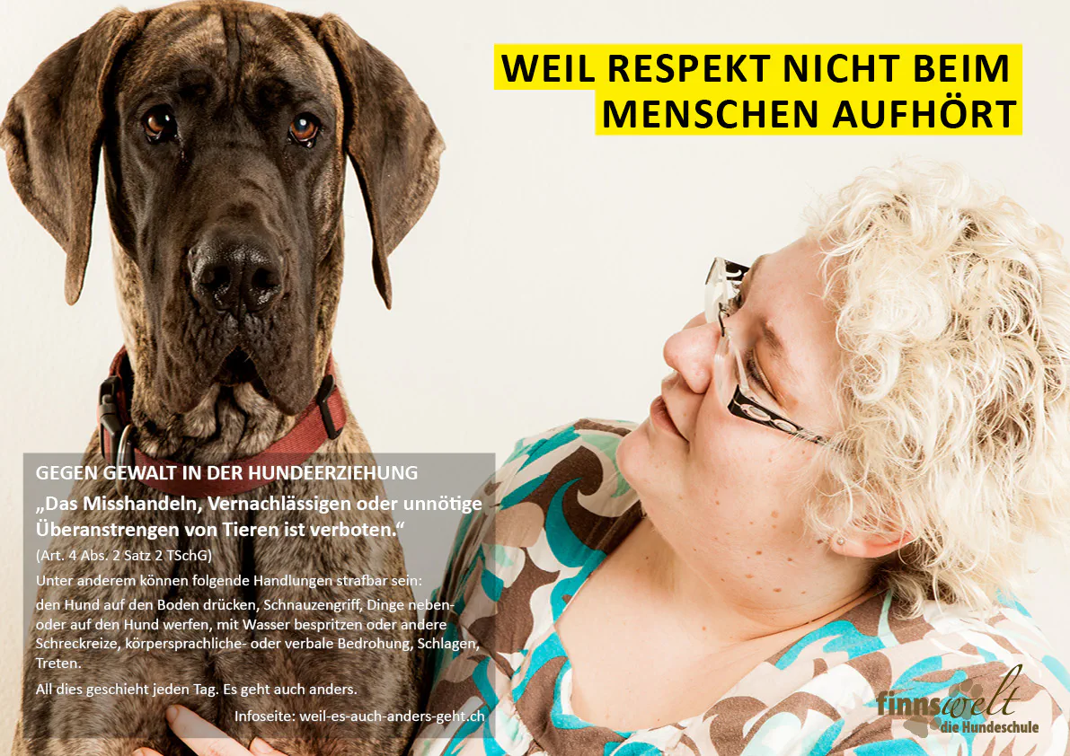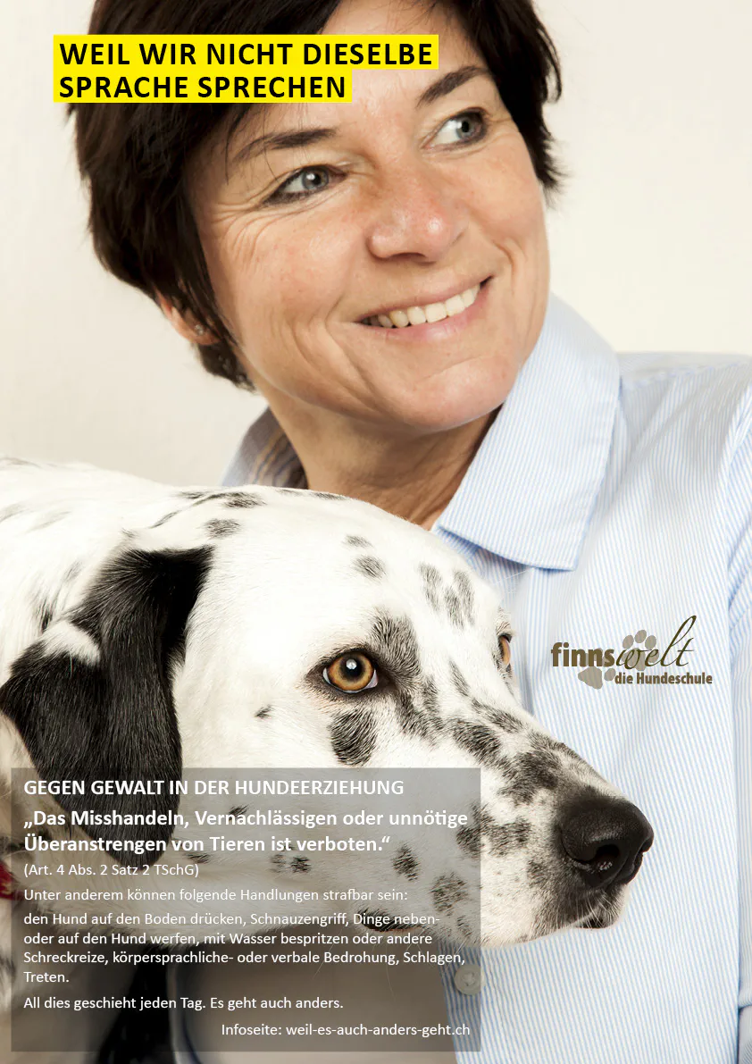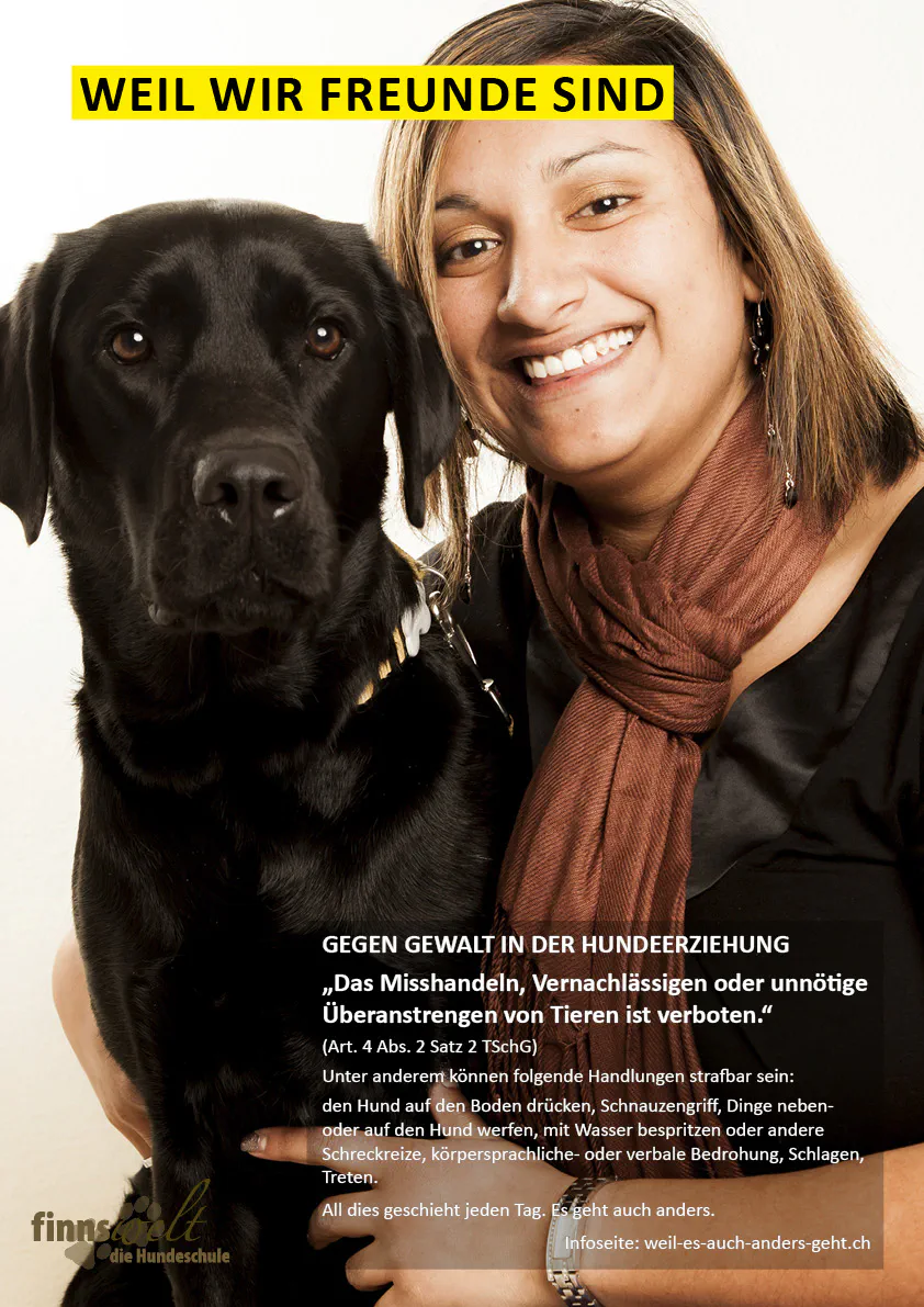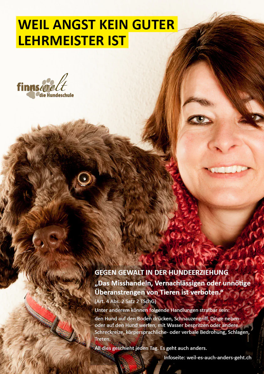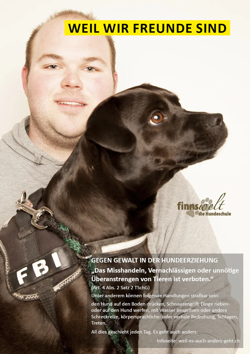 Die Idee von Isabelle Merk, der Gründerin der Hundeschule FinnsWelt: Ein Foto eines Mensch-Hund Team mit einen mit "Weil..." beginnenden, frei gewählten, prägnanten Satz, z.B. "Weil wir Freunde sind" dazu einen Artikel aus dem Tierschutzgesetz mit ein paar erklärenden Worten dazu: