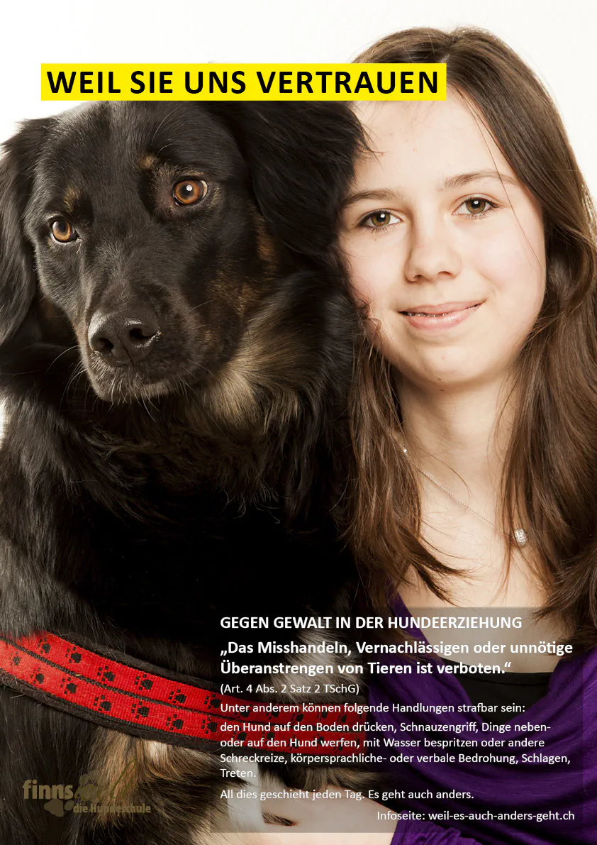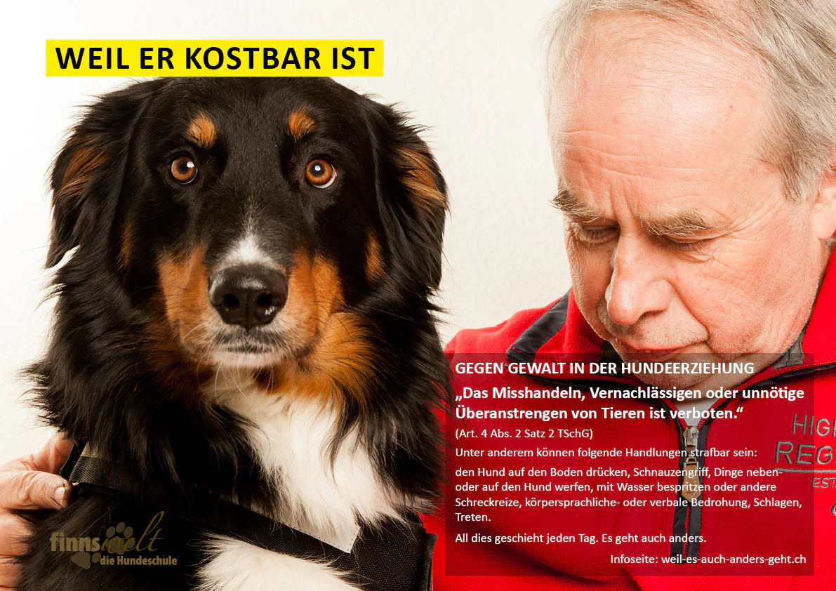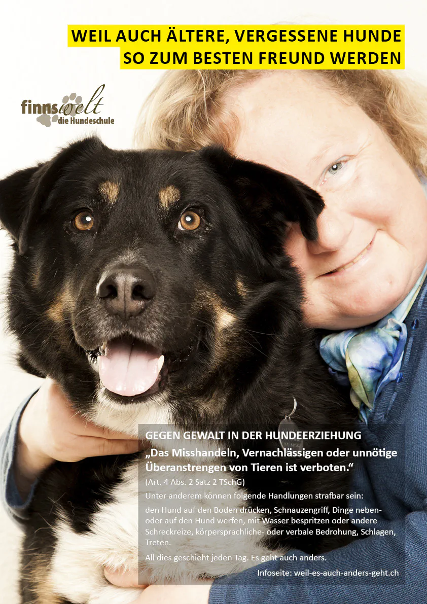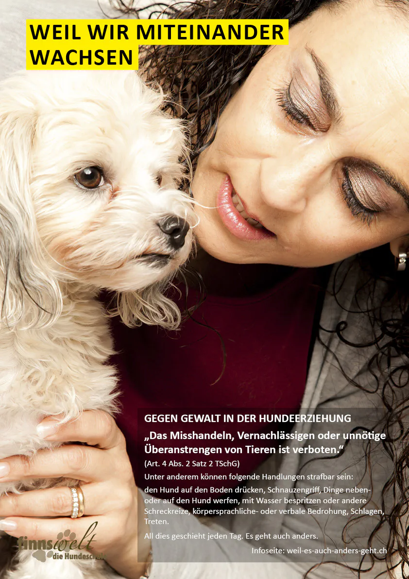 Die Idee von Isabelle Merk, der Gründerin der Hundeschule FinnsWelt: Ein Foto eines Mensch-Hund Team mit einen mit "Weil..." beginnenden, frei gewählten, prägnanten Satz, z.B. "Weil wir Freunde sind" dazu einen Artikel aus dem Tierschutzgesetz mit ein paar erklärenden Worten dazu:
